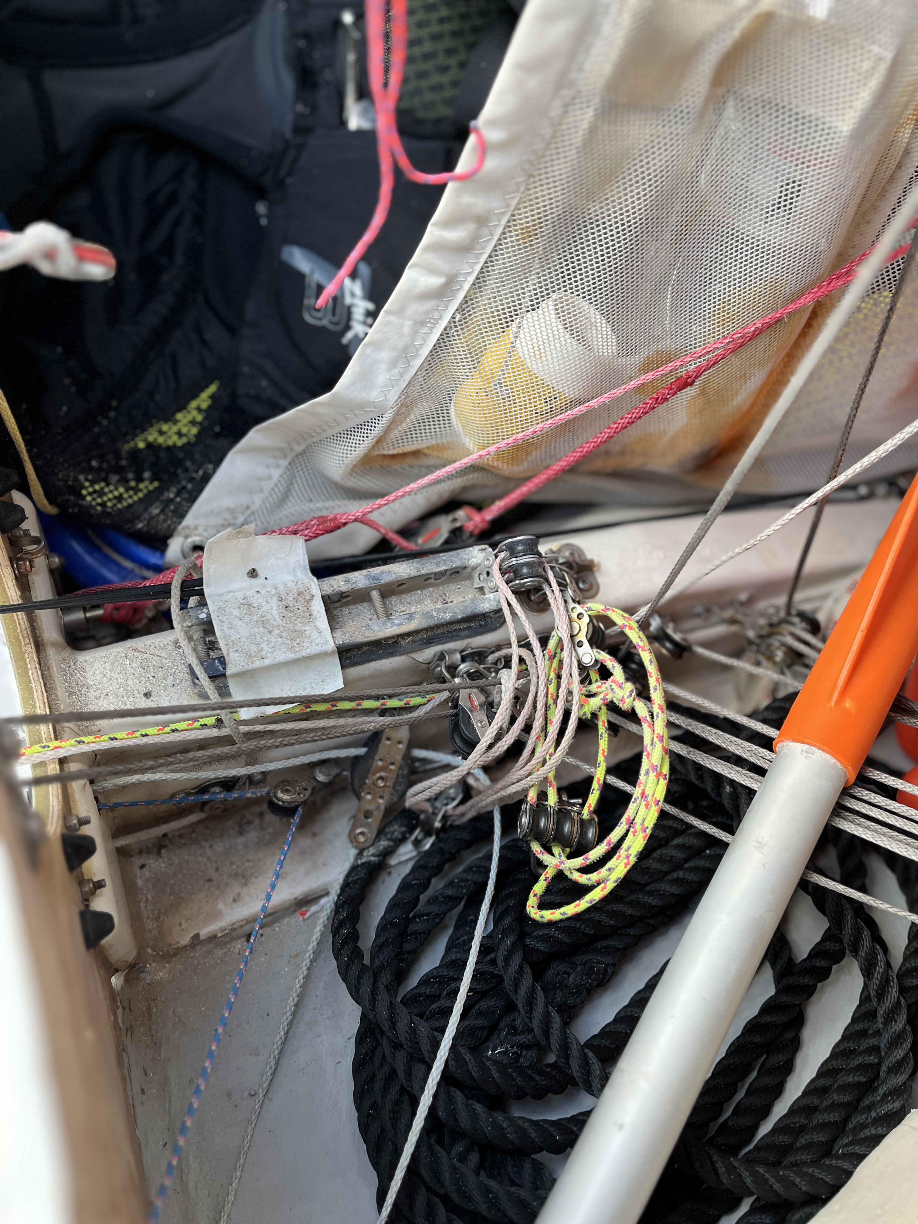 réglages centralisés pour utilisation barreur/équipier - étai, haubans, rails de haubans, ascenseur, spi avec 2 circuits (court ou long), etc...