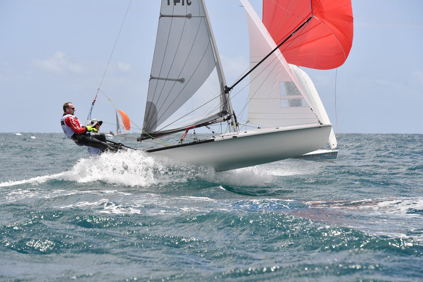 Manche 2 dans 15/18 nds grosse bascule à gauche après départ une fois de plus Luke/Peter caracole devant intouchable au près et toujours du bon coté au portant. Adler /Cooper (1er mixte). enroule le dernier près en 2 mais se font passer par Duessen /Soan et Batchelor/Pascoe en 3 . Marin /Philippe sont 8 nous 42