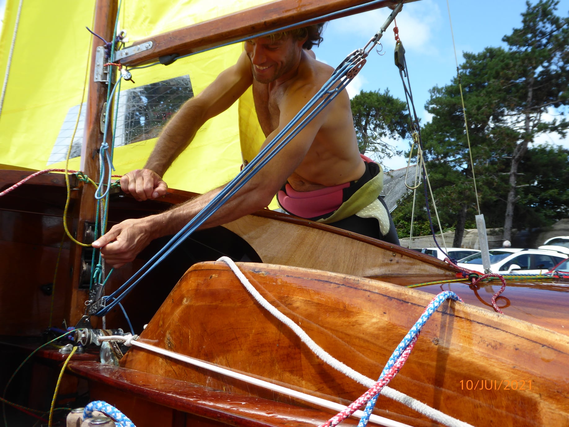 En ce moment c'est rénovation de l'accastillage d'époque, de la bôme, du safran et de la dérive. Je vous remettrait quelques photos une fois l'accastillage en place.