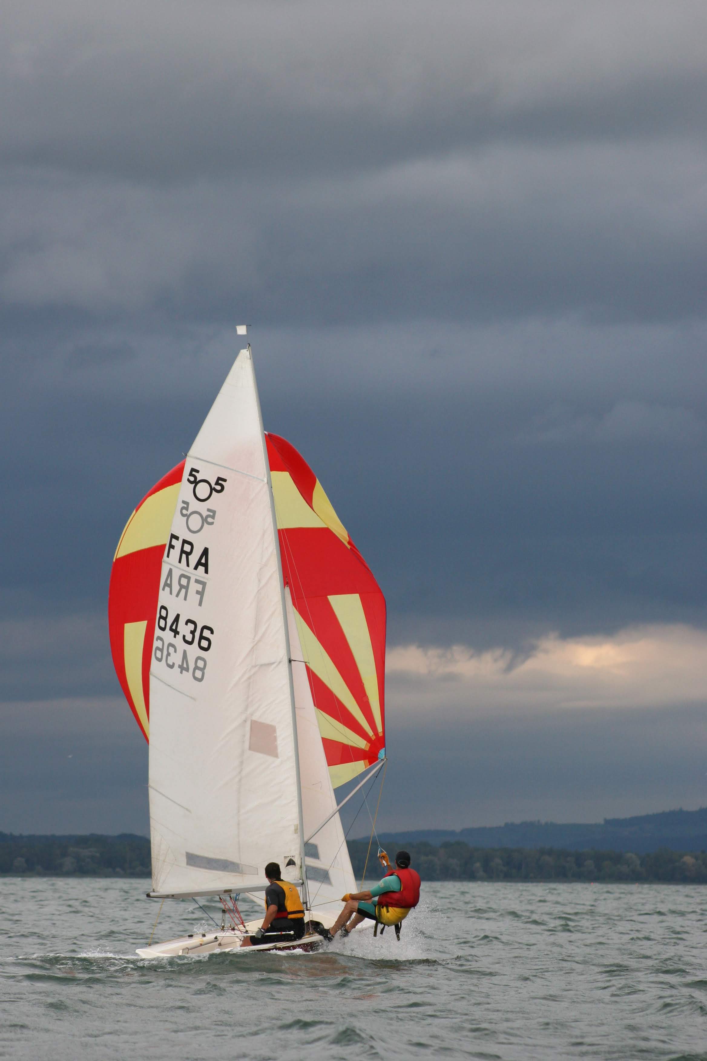 La lèvre du spi est le secret de son réglage optimal... l'équipier doit régler son spi de façon à avoir en premanence la lèvre sur le bord d'attaque. Samuel Carvahlo à la barre de son cinquo montre sur cette belle image de 2006 comment la former...